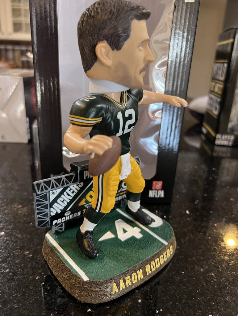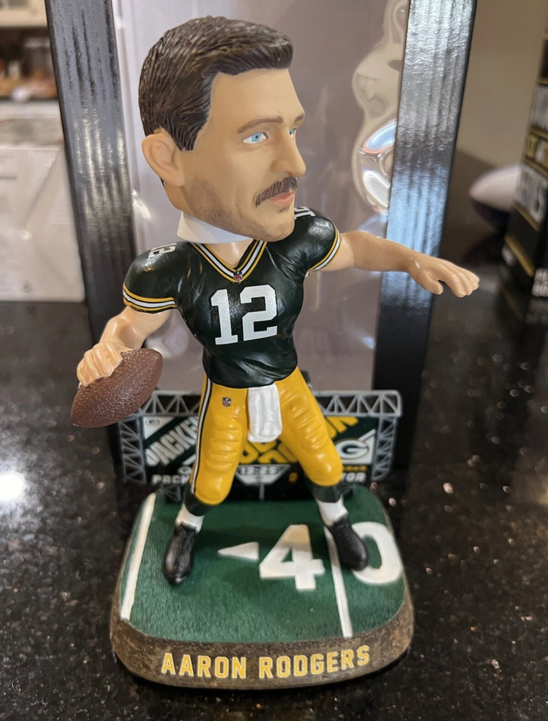 Celebrate your love for the Green Bay Packers and their star quarterback with this unique bobblehead. Whether you're a collector or looking for a great gift, this item will be sure to impress. Don't miss out on the chance to own a piece of NFL history.