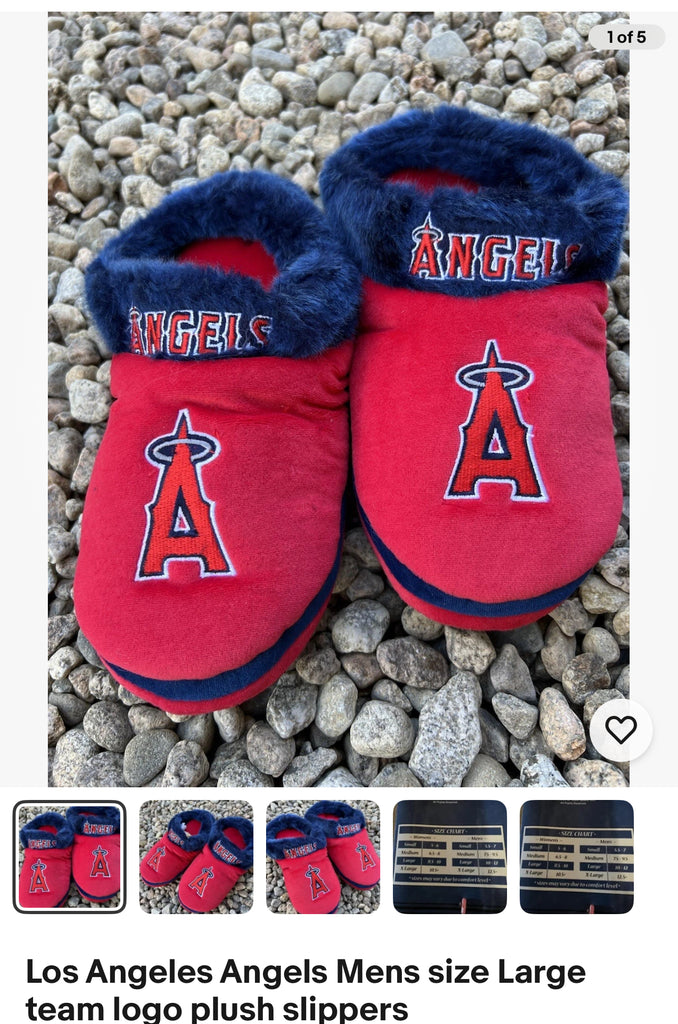 Los Angeles Angels mens size Large team logo plush slippers. New in original packaging. See pictures for size chart.
