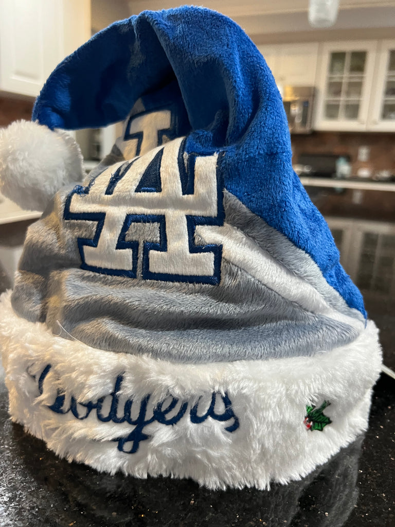 Stay warm and show your team spirit with the Los Angeles Dodgers MLB Team Logo Plush Adult Santa Holiday Hat. This festive hat features the official team logo of the Los Angeles Dodgers, making it the perfect accessory for any fan. Made from plush material, this hat is both comfortable and cozy, perfect for the holiday season or any baseball fan looking to add a touch of team pride to their winter wardrobe.