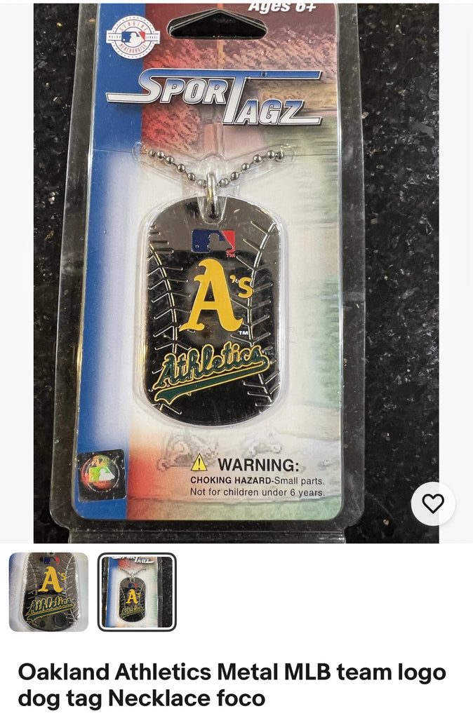 New Oakland Athletics metal MLB team logo dog-tag necklace foco.