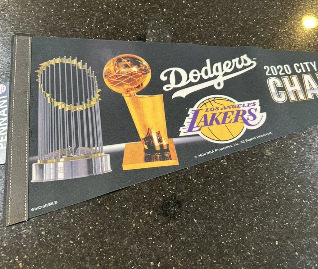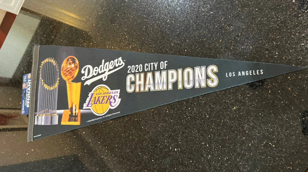 2020 City of Champions Lakers & Dodgers pennant featuring both the Lakers NBA Champions and the Dodgers World Series Champions, two of Los Angeles' most beloved sports teams