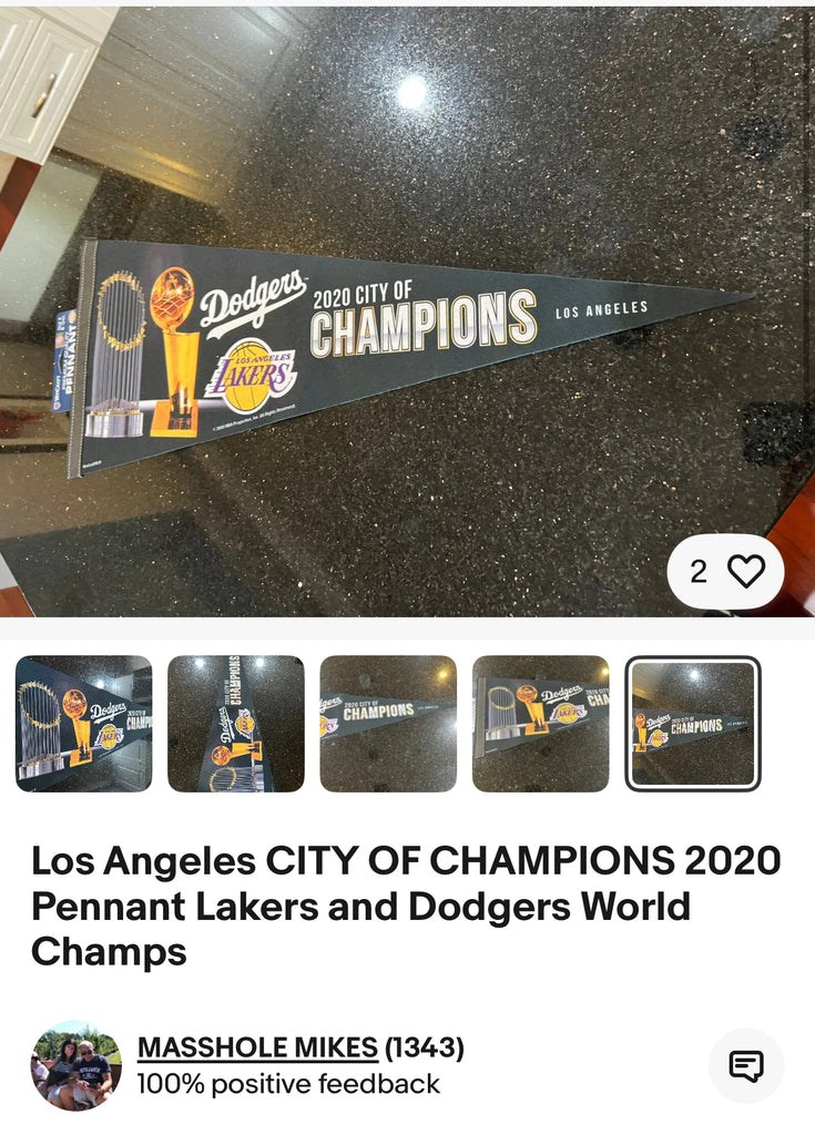 The pennant is perfect for any fan of basketball or baseball, or for anyone who loves to collect sports memorabilia. It's an officially licensed product from the NBA and is made in the United States. Celebrate the Lakers and Dodgers' victories in the 2020 season without mentioning the condition of the item. Add this banner to your collection today!