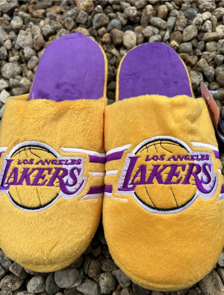 Los Angeles Lakers NBA Team Logo stripe plush mens slippers