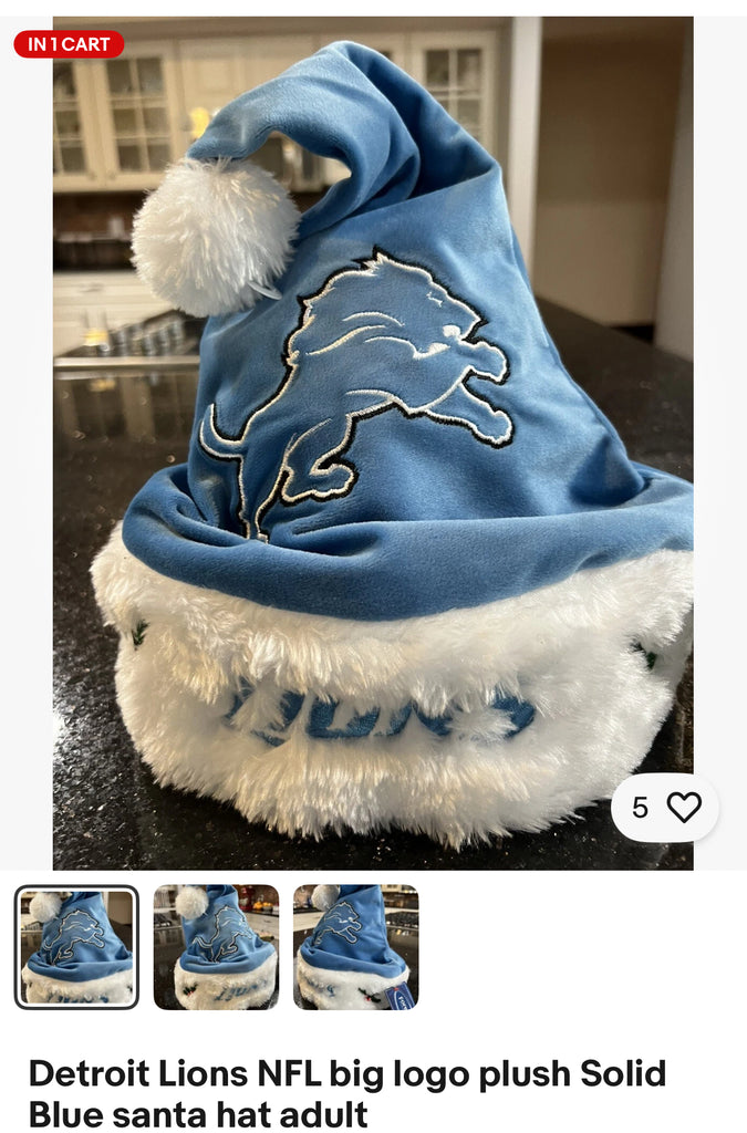 Show your team spirit this holiday season with the Detroit Lions NFL big logo plush Solid Blue santa hat for adults. Perfect for fans of the National Football League (NFL), this hat is made of high-quality materials and in the team's signature blue color. The hat features the team's big logo prominently displayed on the front, making it the ideal accessory for any fan. Whether you're attending a game or just getting into the holiday spirit, this Detroit Lions Santa hat is sure to bring a smile to your face. |