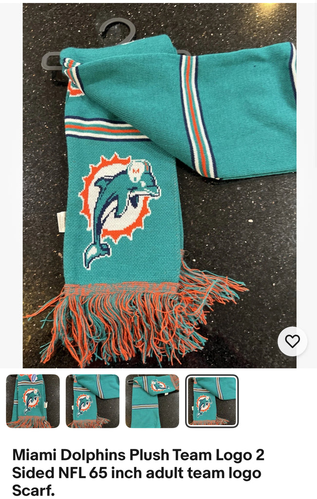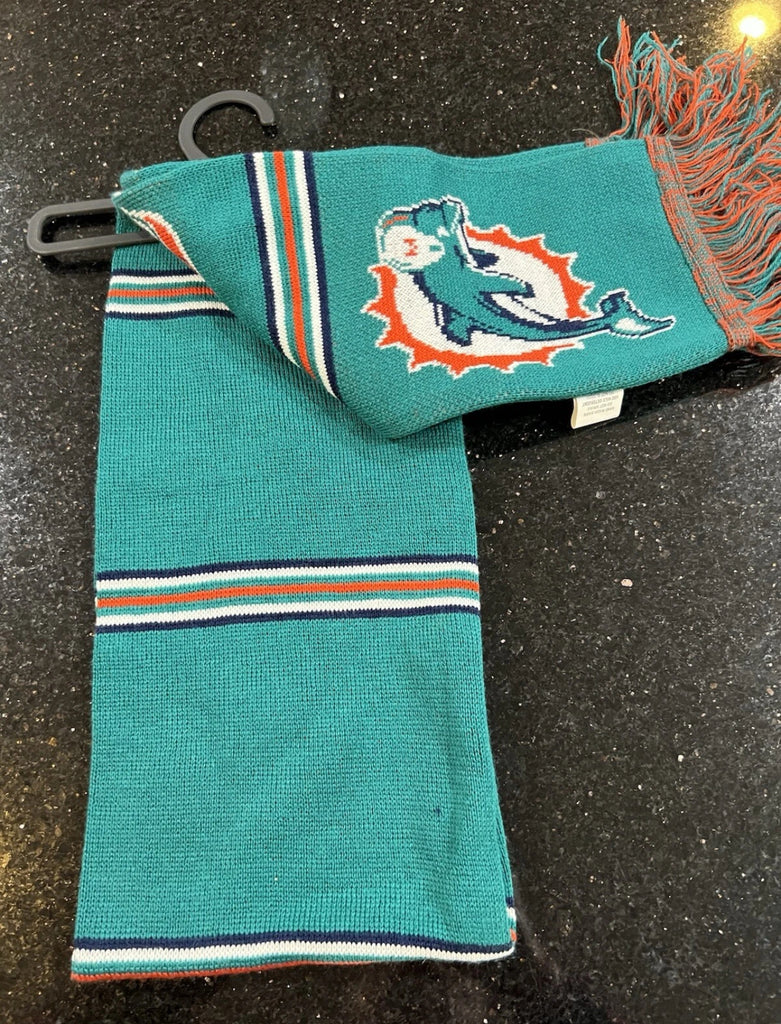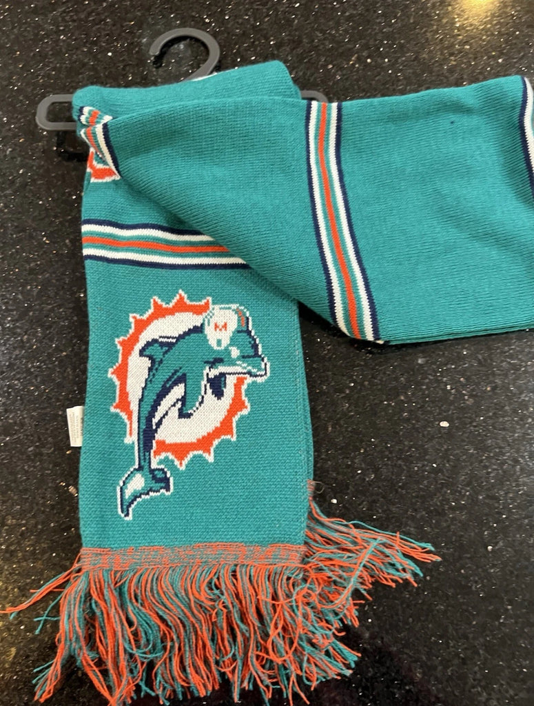 Miami Dolphins with this 65-inch plush team logo scarf. This two-sided scarf features the vibrant team color and the official NFL team logo