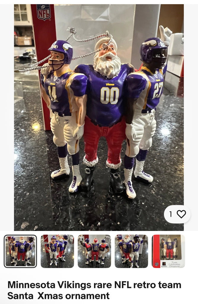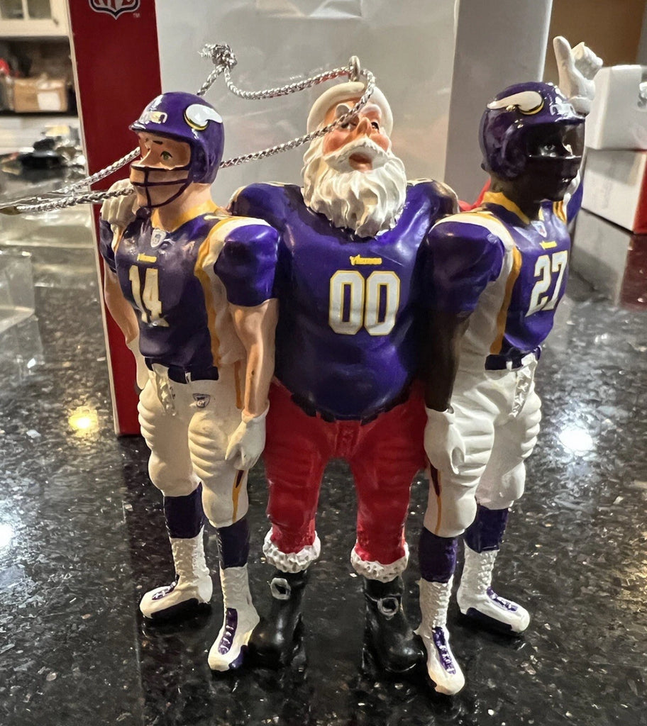 Minnesota Vikings rare retro team Santa Xmas ornament featuring the players with Santa. Made by Forever Collectibles,