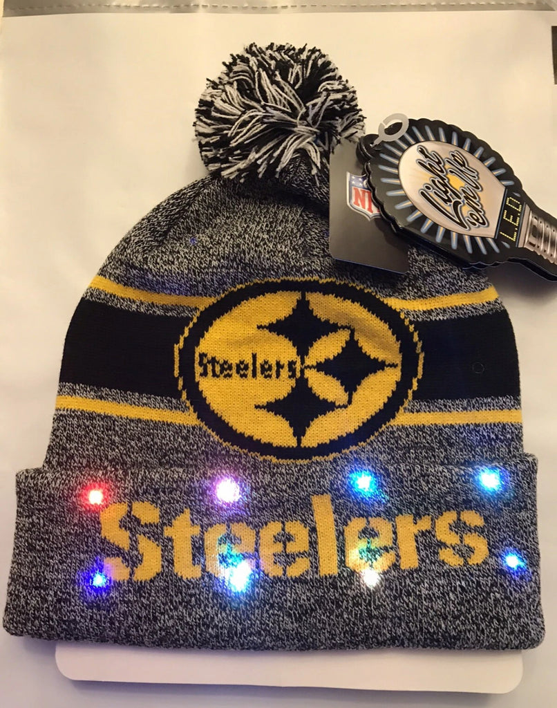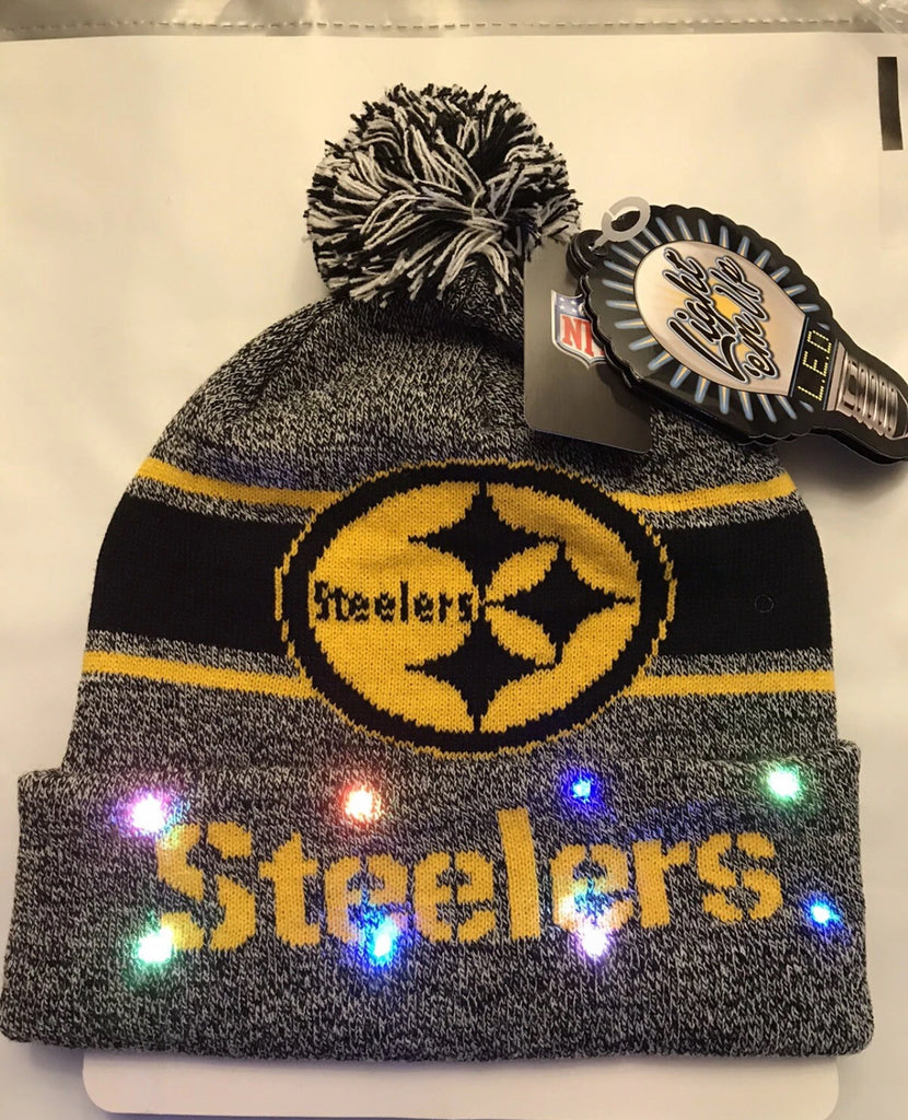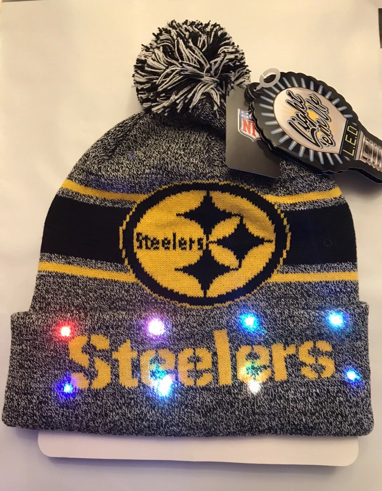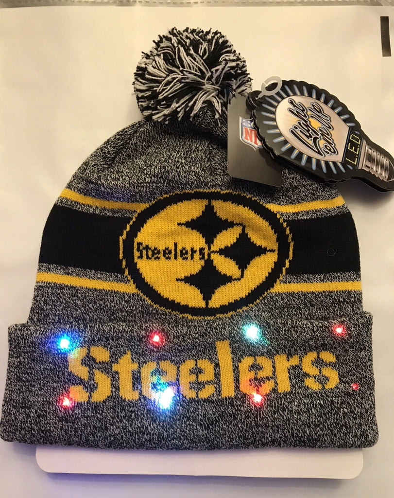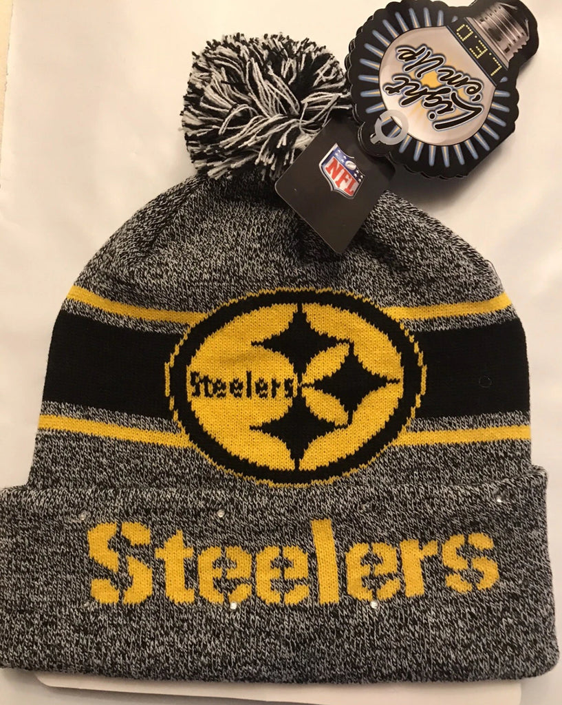 Pittsburgh Steelers Winter Cap Hat cuffed Knit NFL LED Light Up Pom Beanie grey. Condition is New. Shipped with USPS First Class Package.