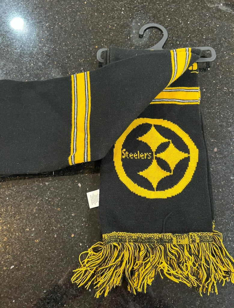 Represent your favorite team in style with this high-quality scarf. Great for game day or everyday wear, this scarf is sure to show off your team spirit. Get yours today and show your support for the Pittsburgh Steelers!