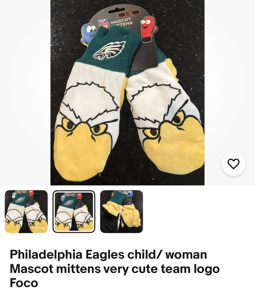 Philadelphia Eagles child/ woman Mascot mittens very cute team logo Foco.